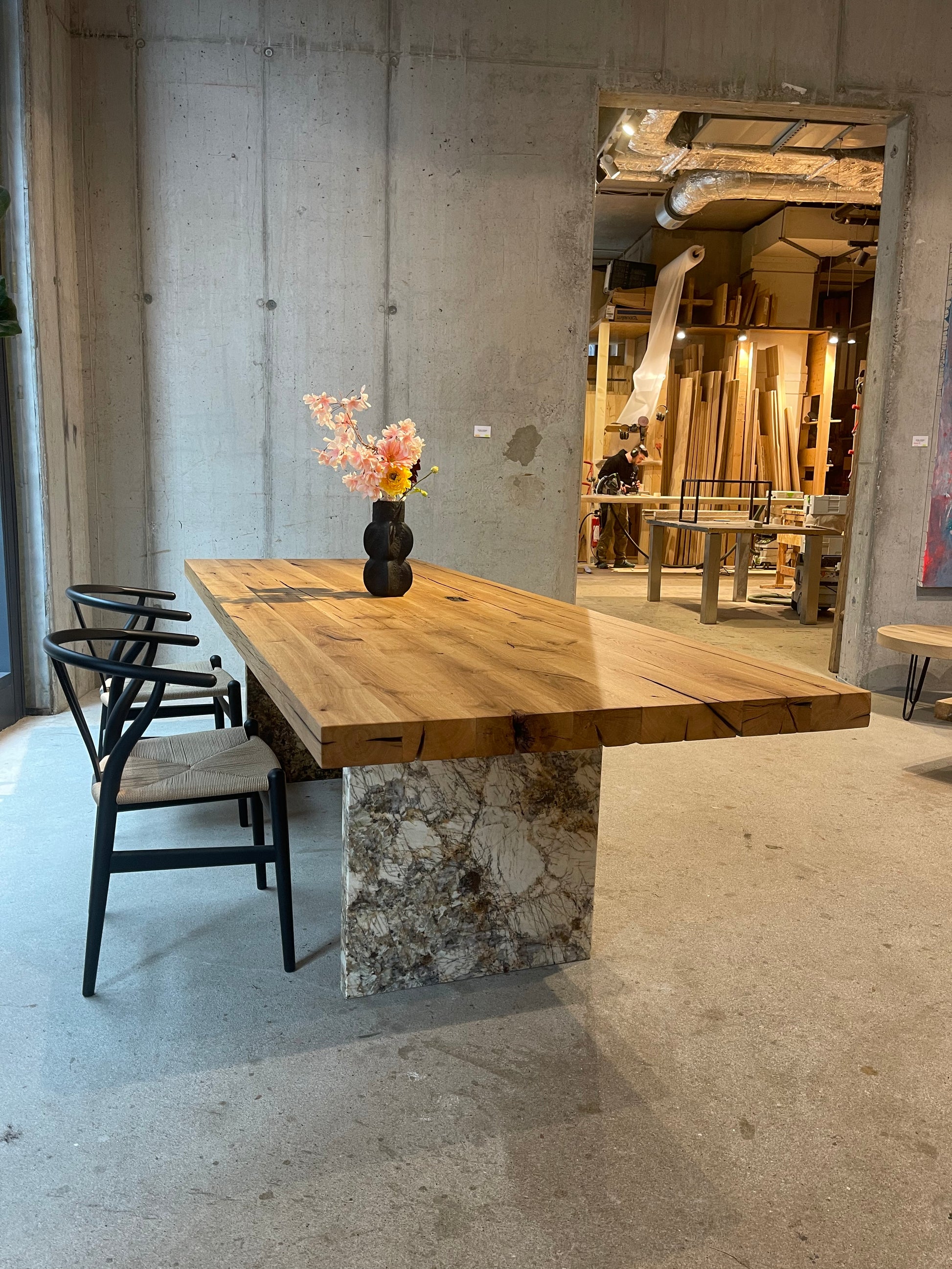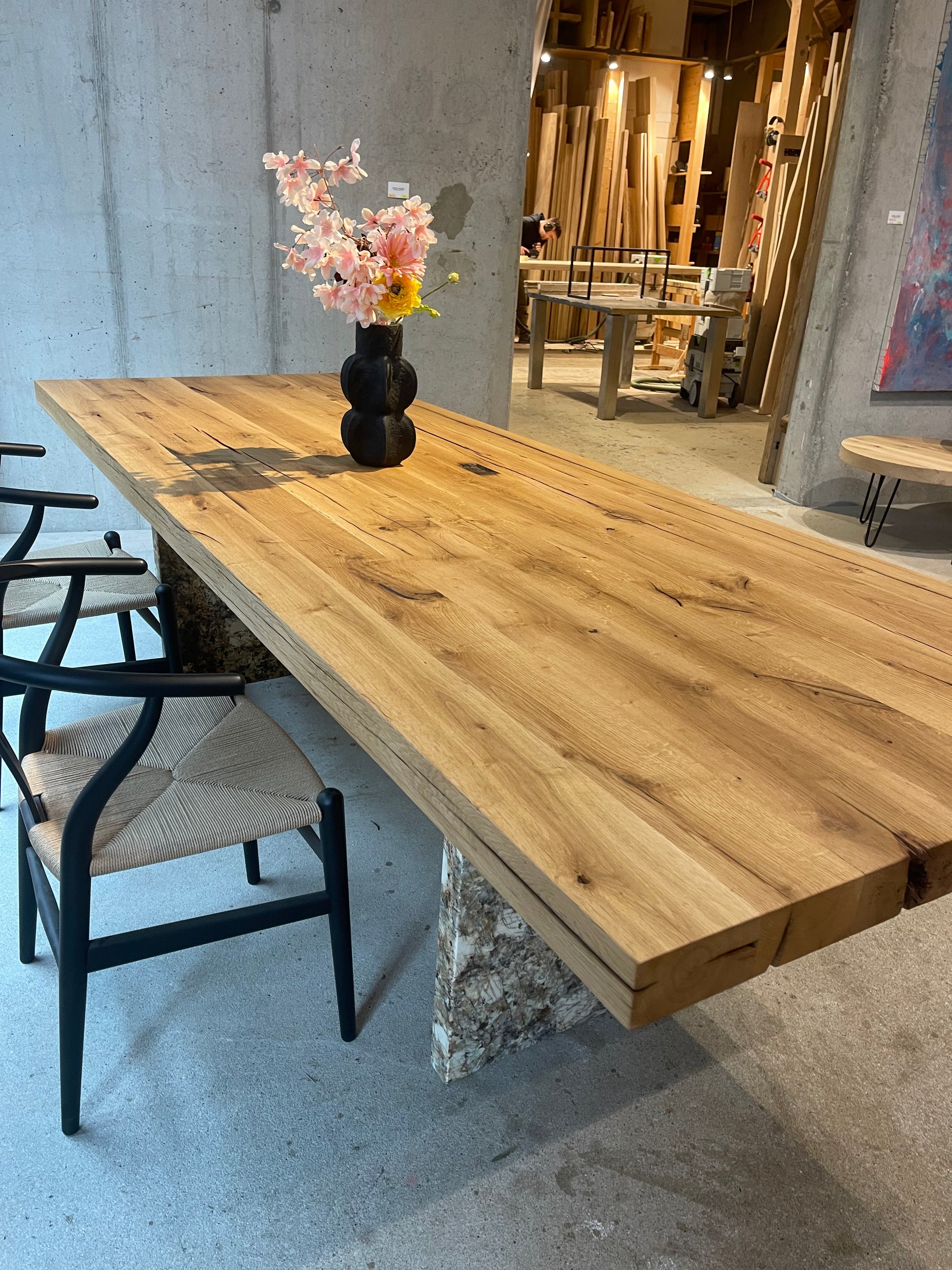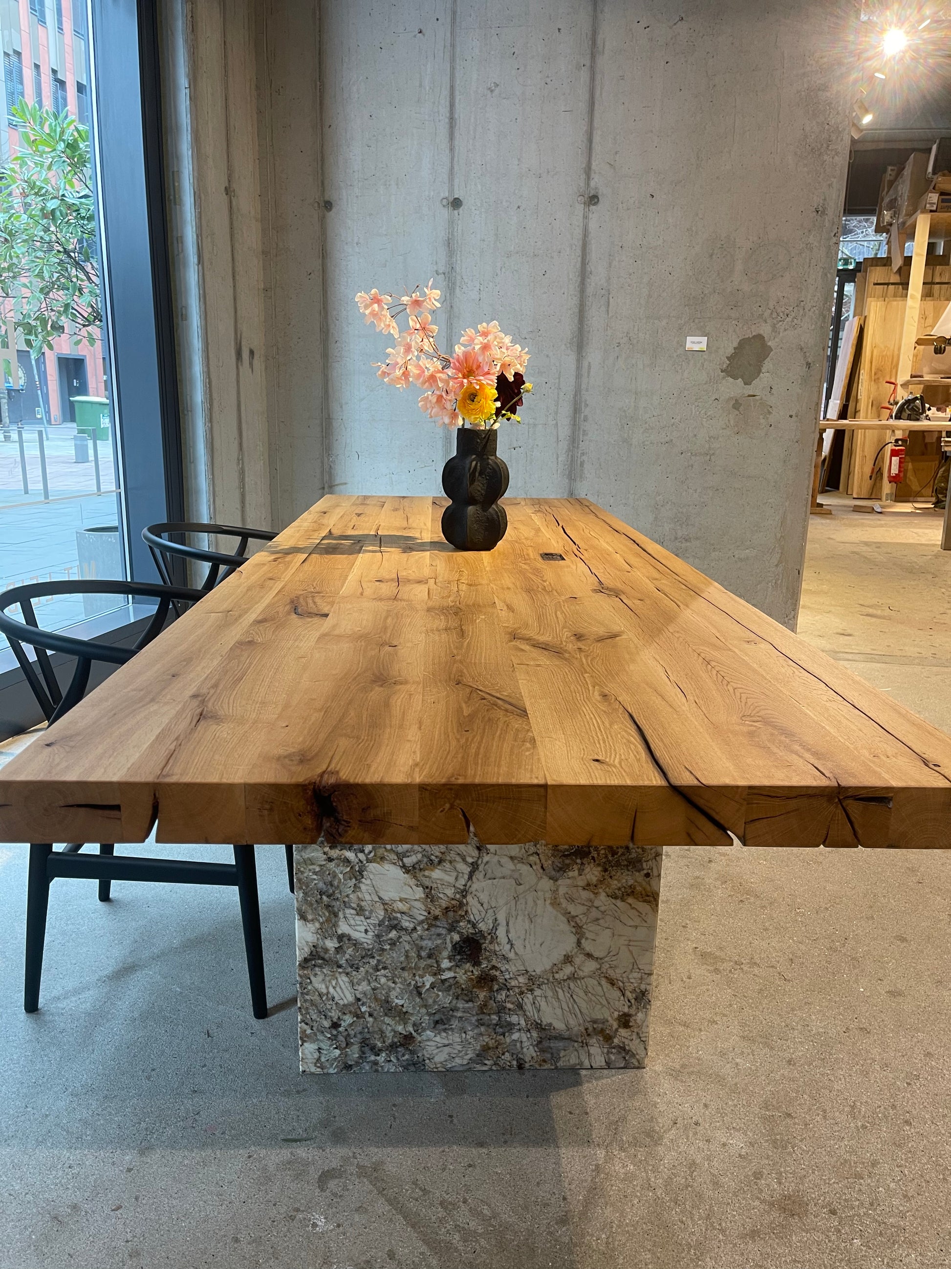 Esstisch aus massiver Eiche und hochwertigem Naturstein