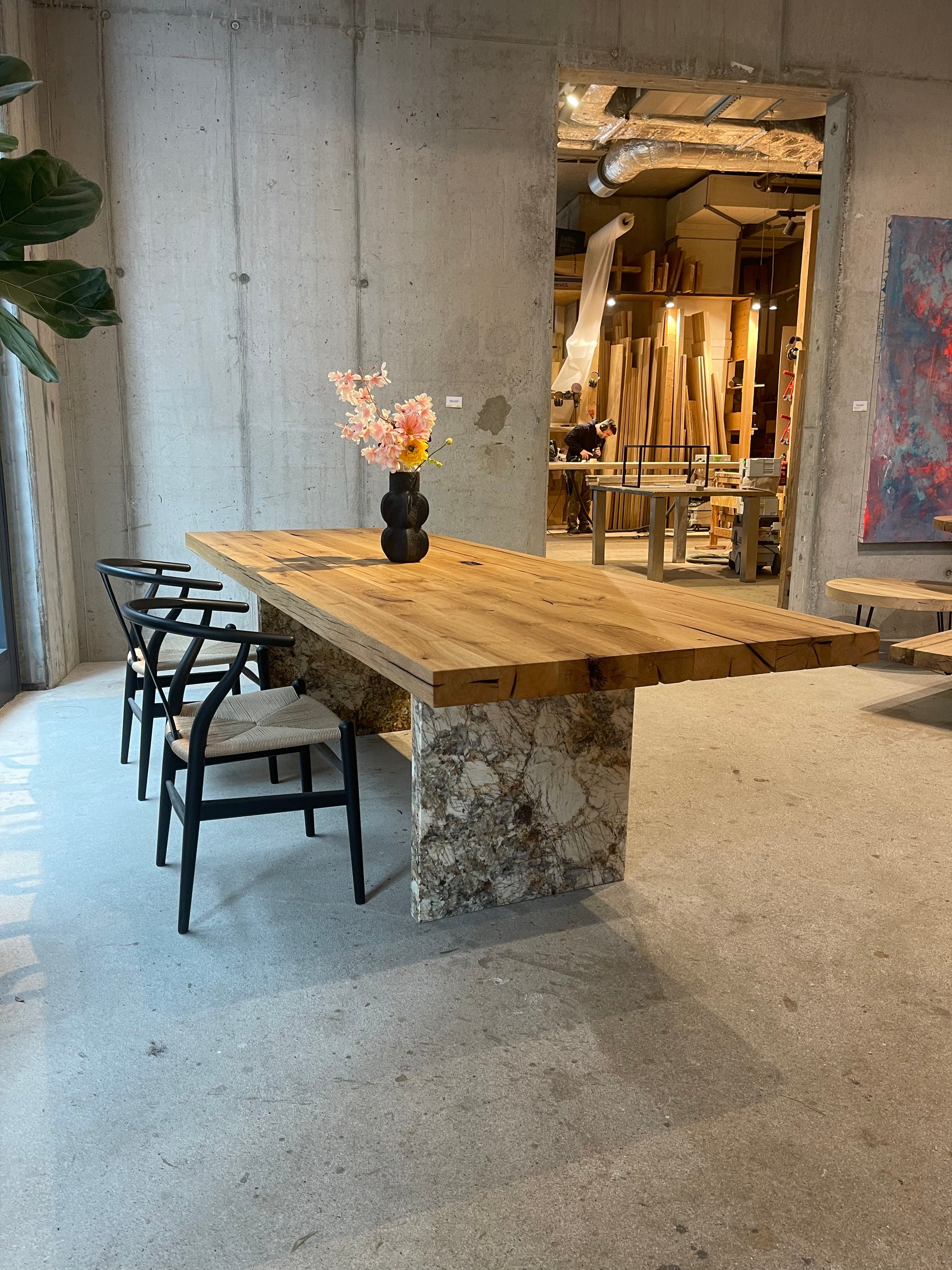 Esstisch aus massiver Eiche und hochwertigem Naturstein