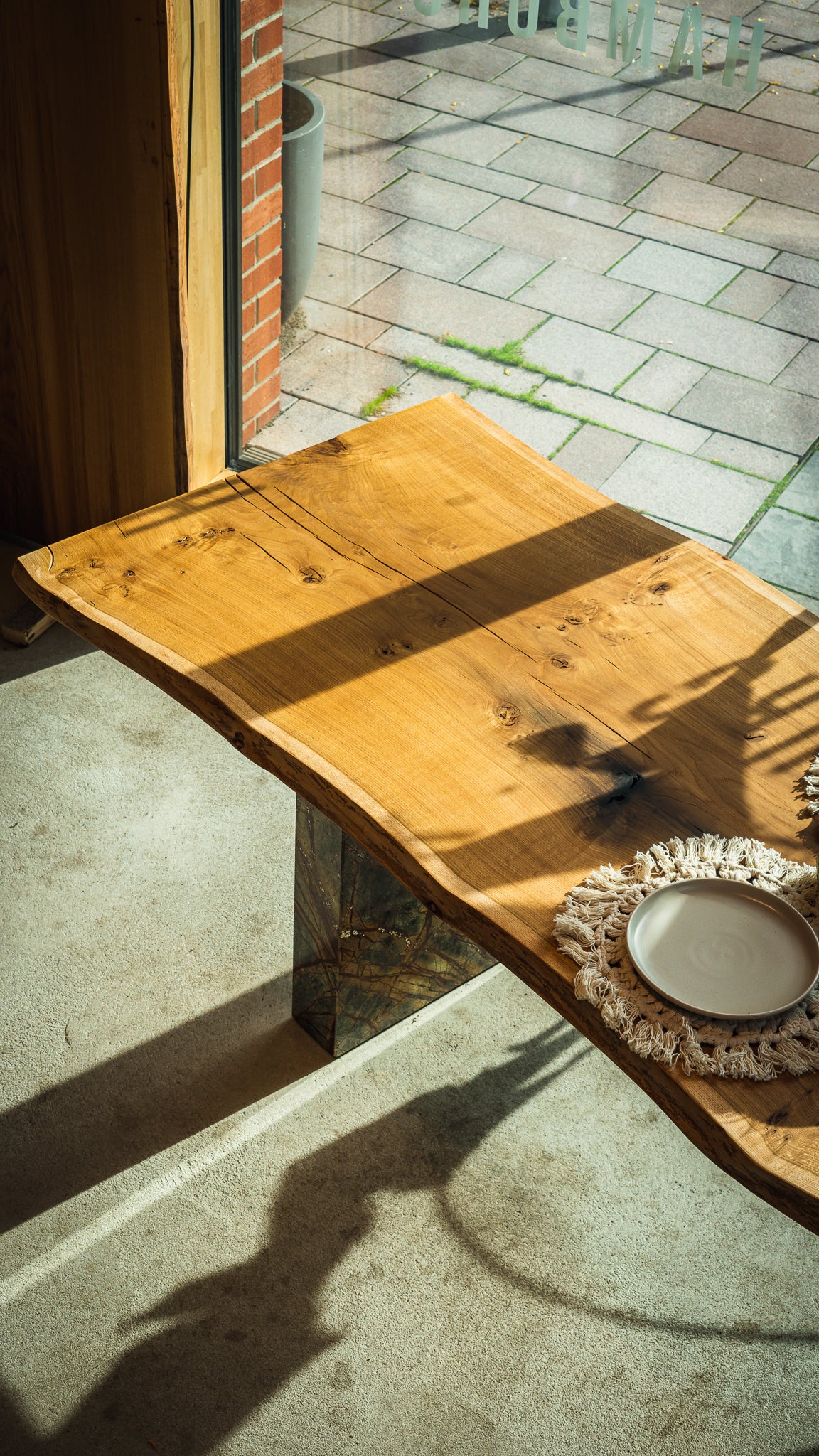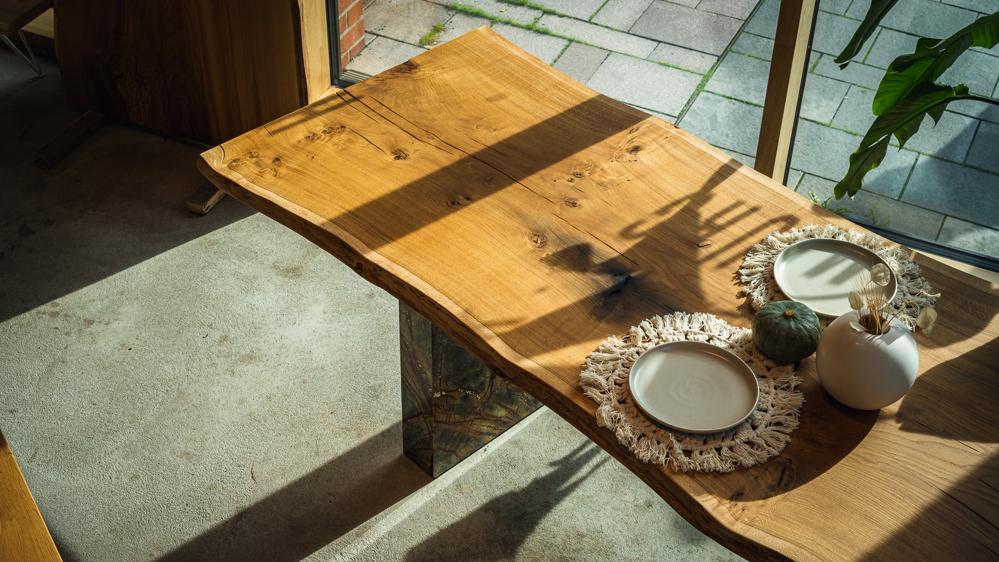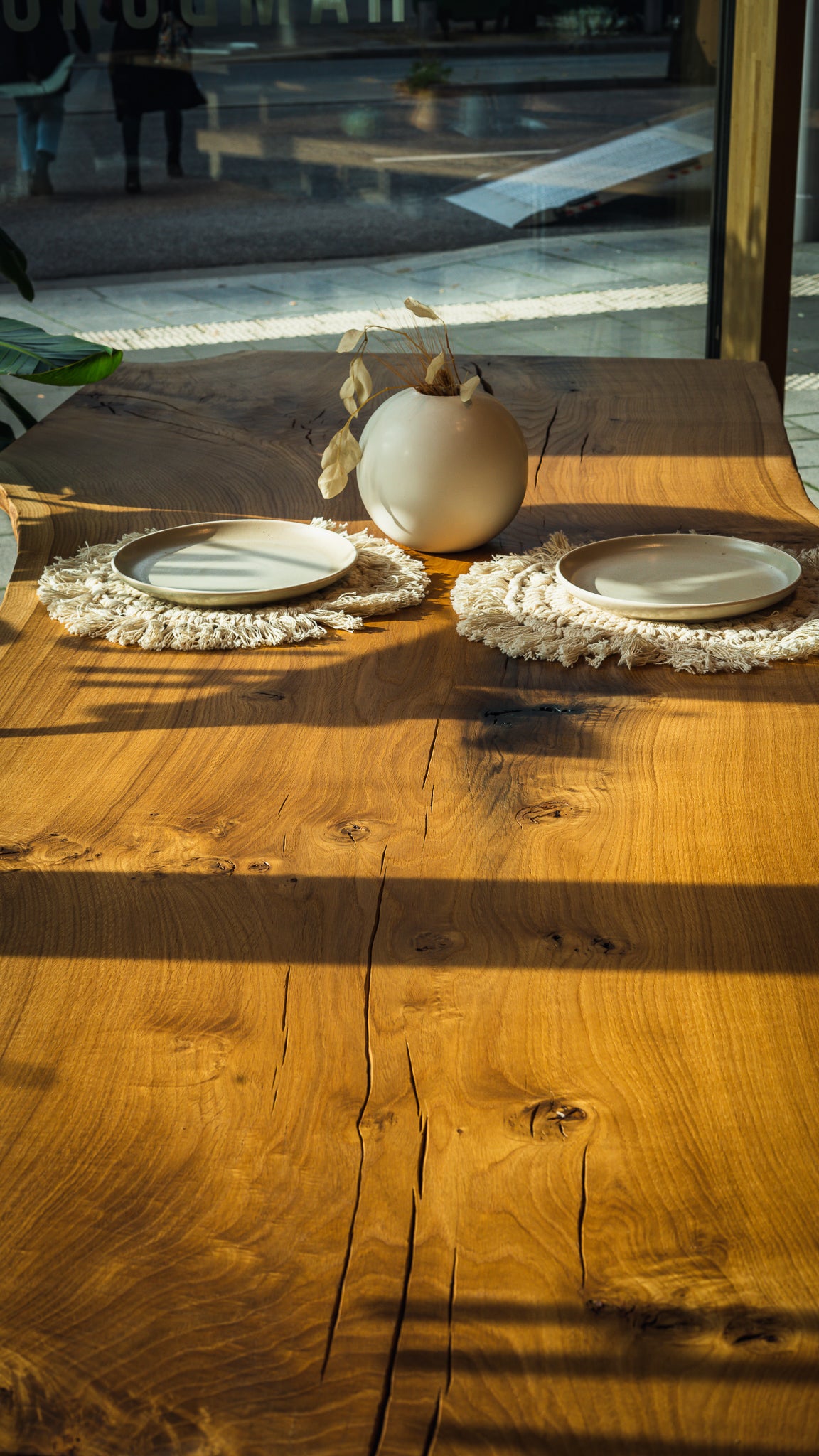 Unser Holz beziehen wir aus nachhaltiger Forstwirtschaft in Europa. Jede Tischplatte stammt aus einer massiven Stammbohle, wodurch jedes Stück ein Unikat mit eigener Geschichte ist.