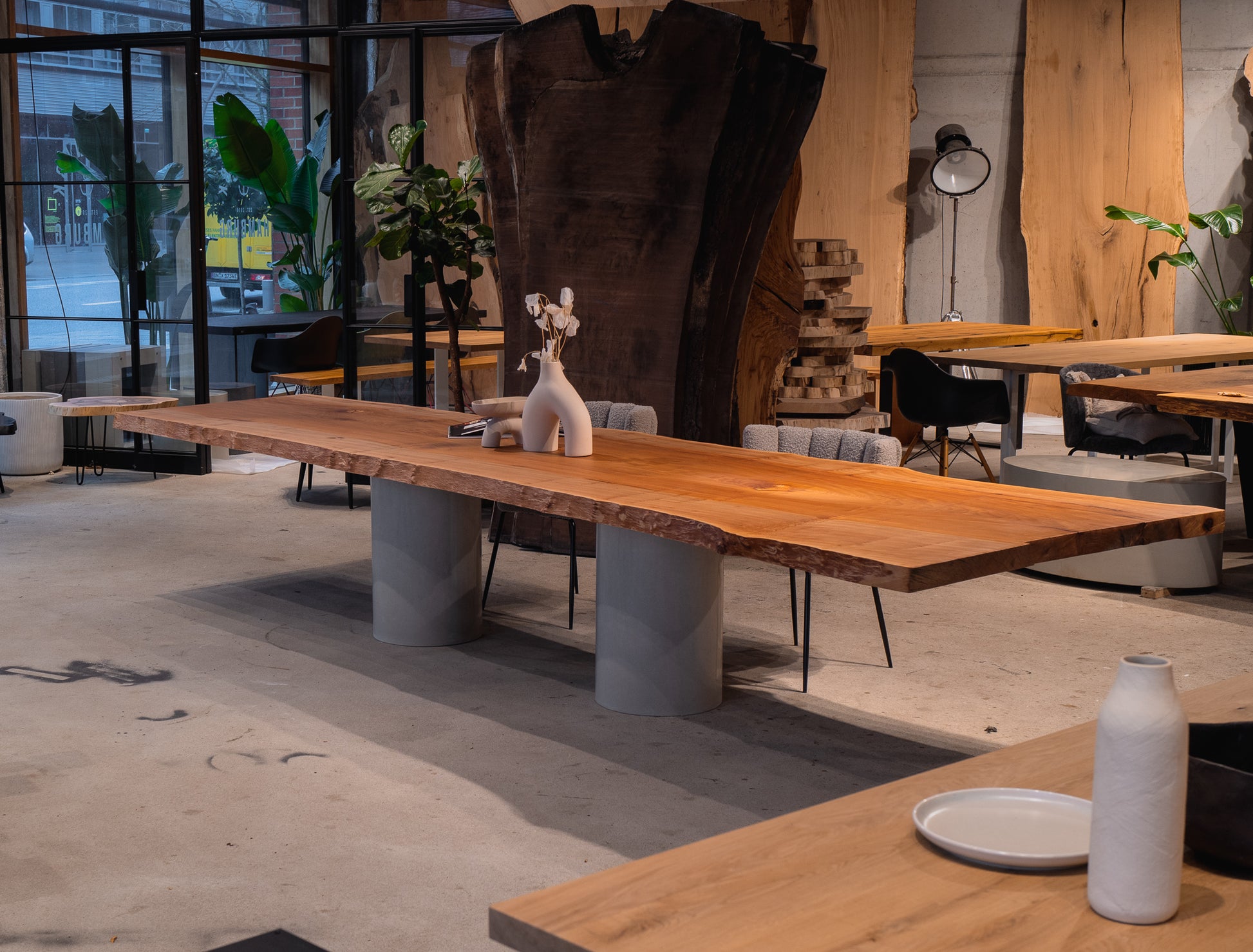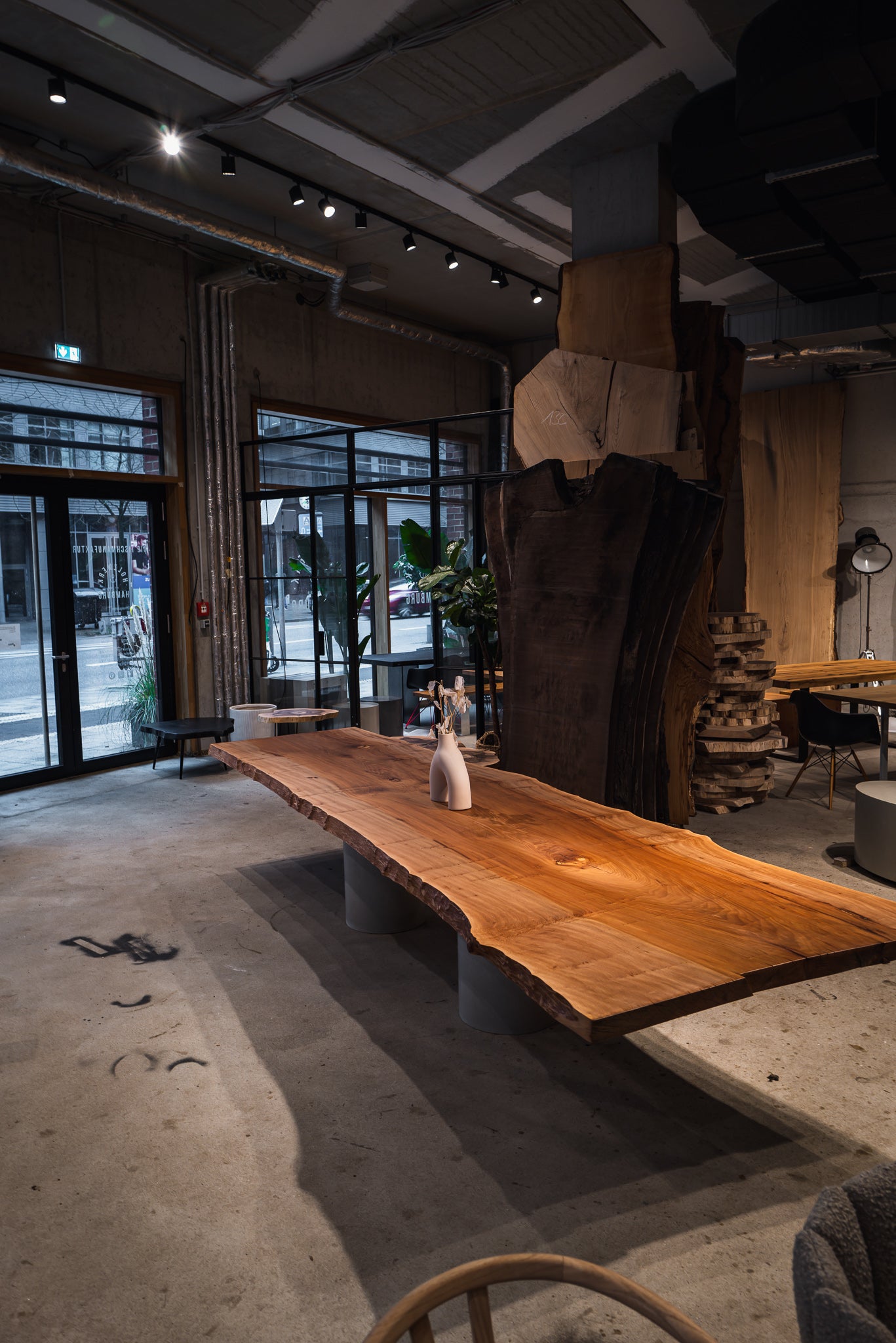 In unserer Ausstellung findest du über 50 sofort verfügbare Massivholztische sowie mehr als 200 Tischplatten zur Auswahl.