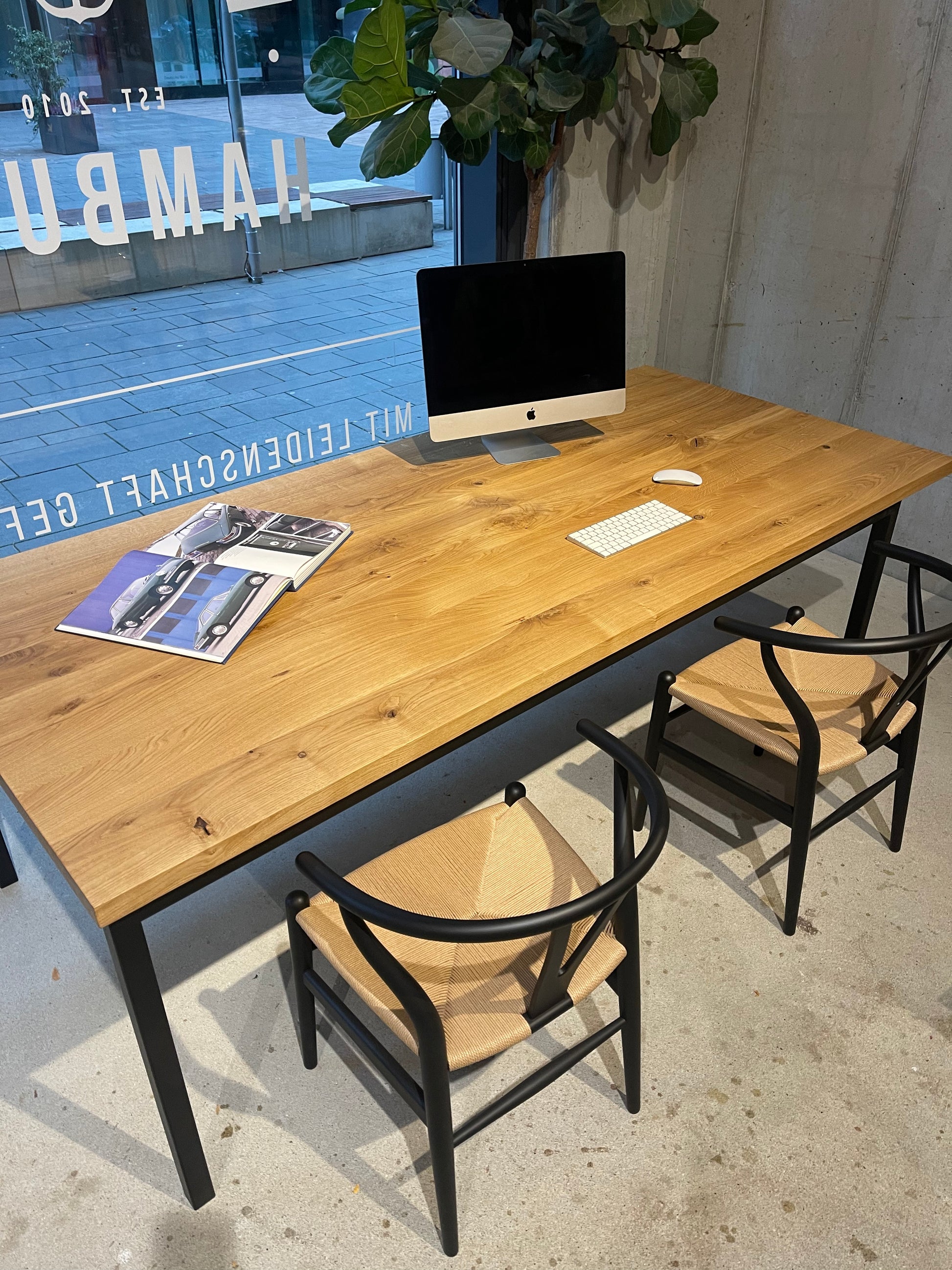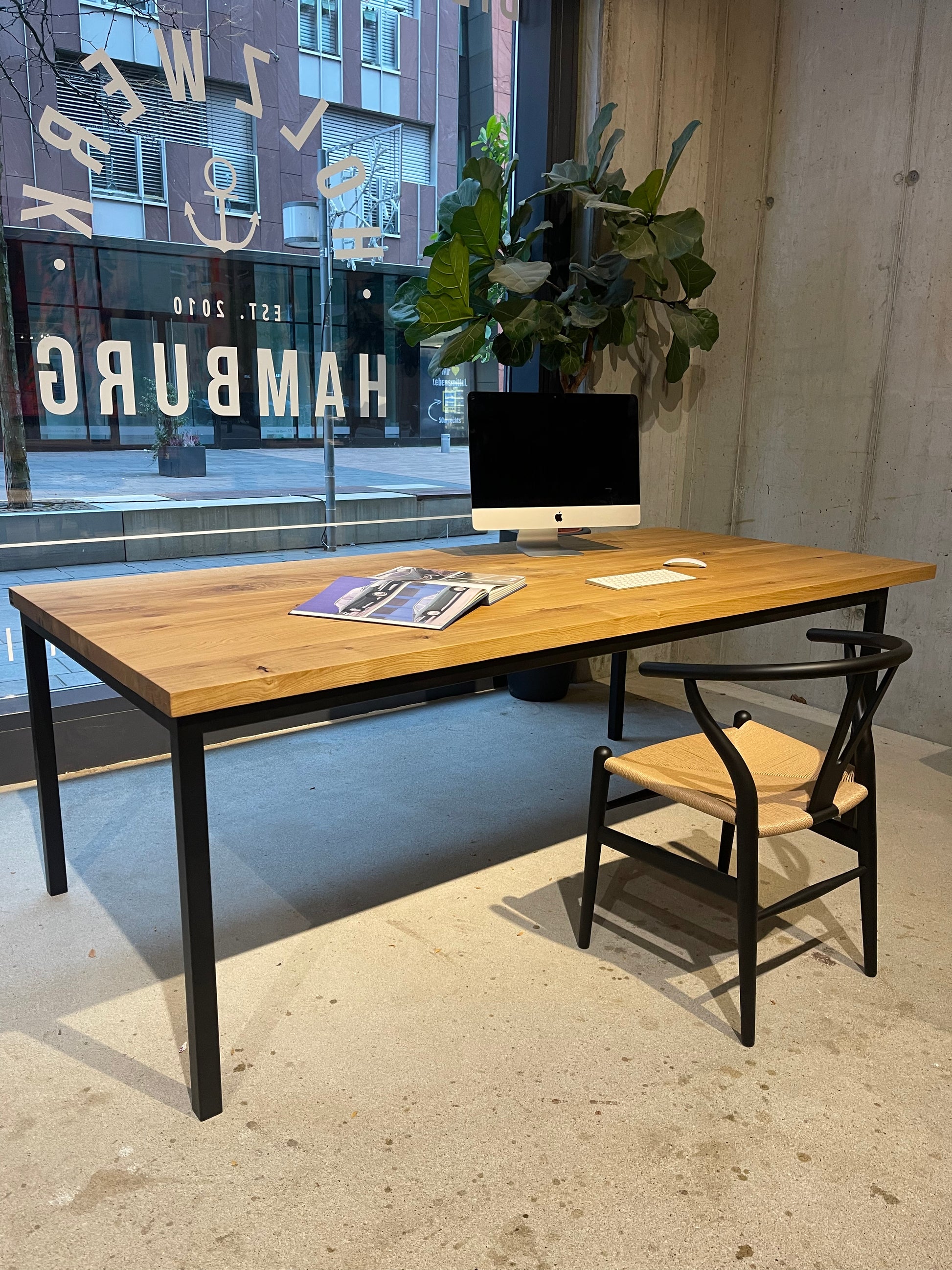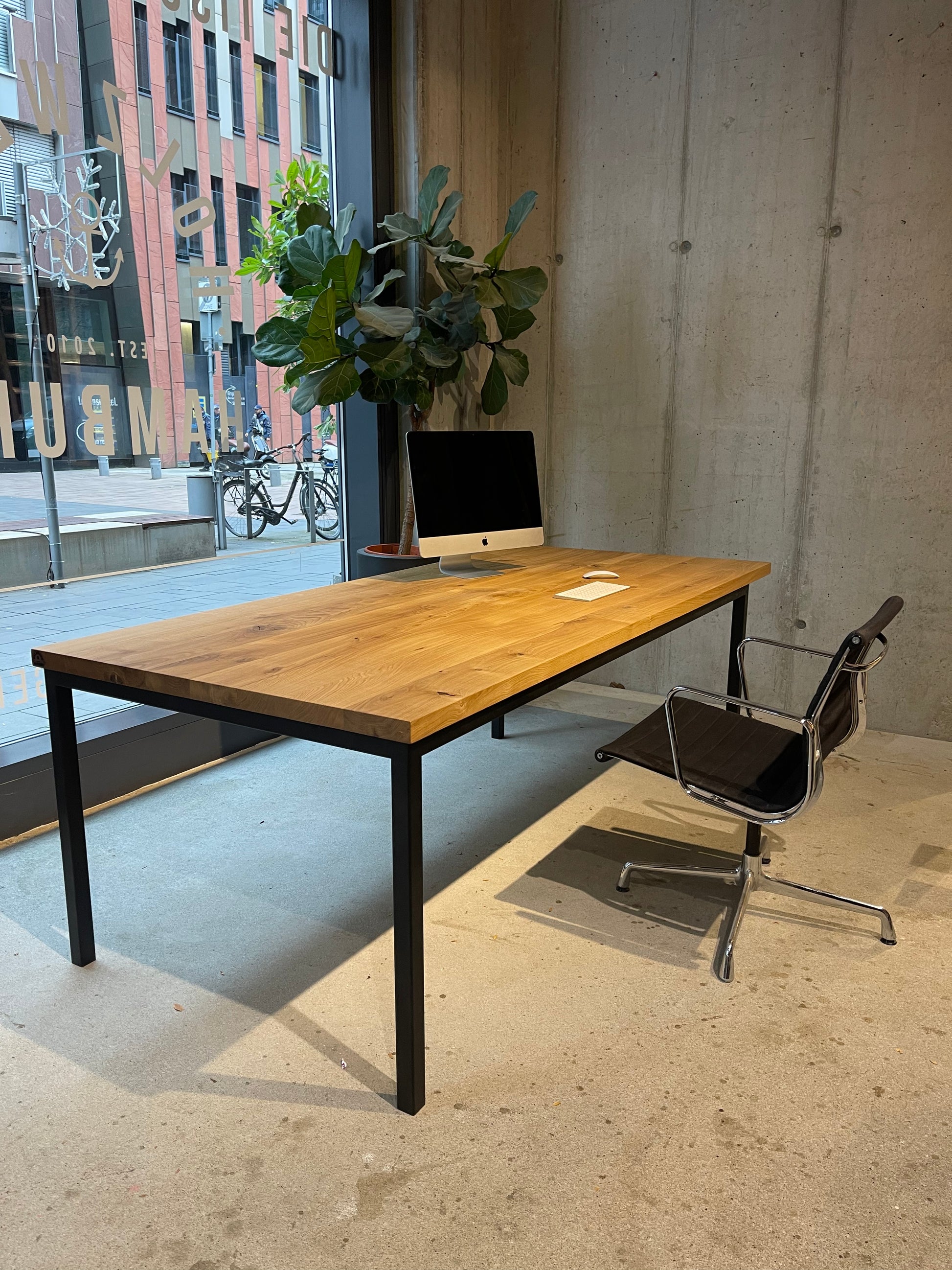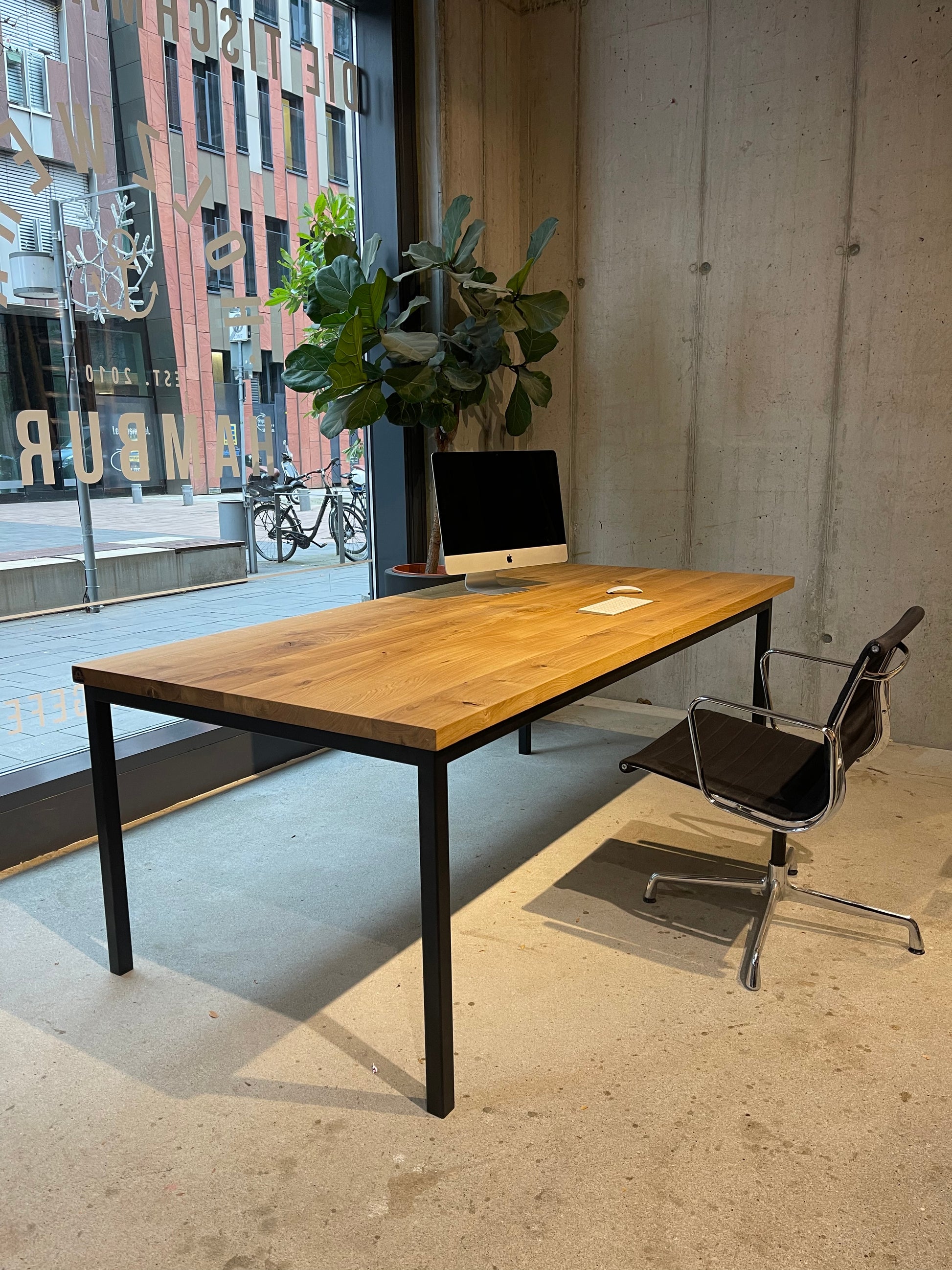 In der Hamburger HafenCity – voll mit Massivholztischen, Platten und persönlicher Beratung im Atelier-Flair. Live vor Ort oder per Video.