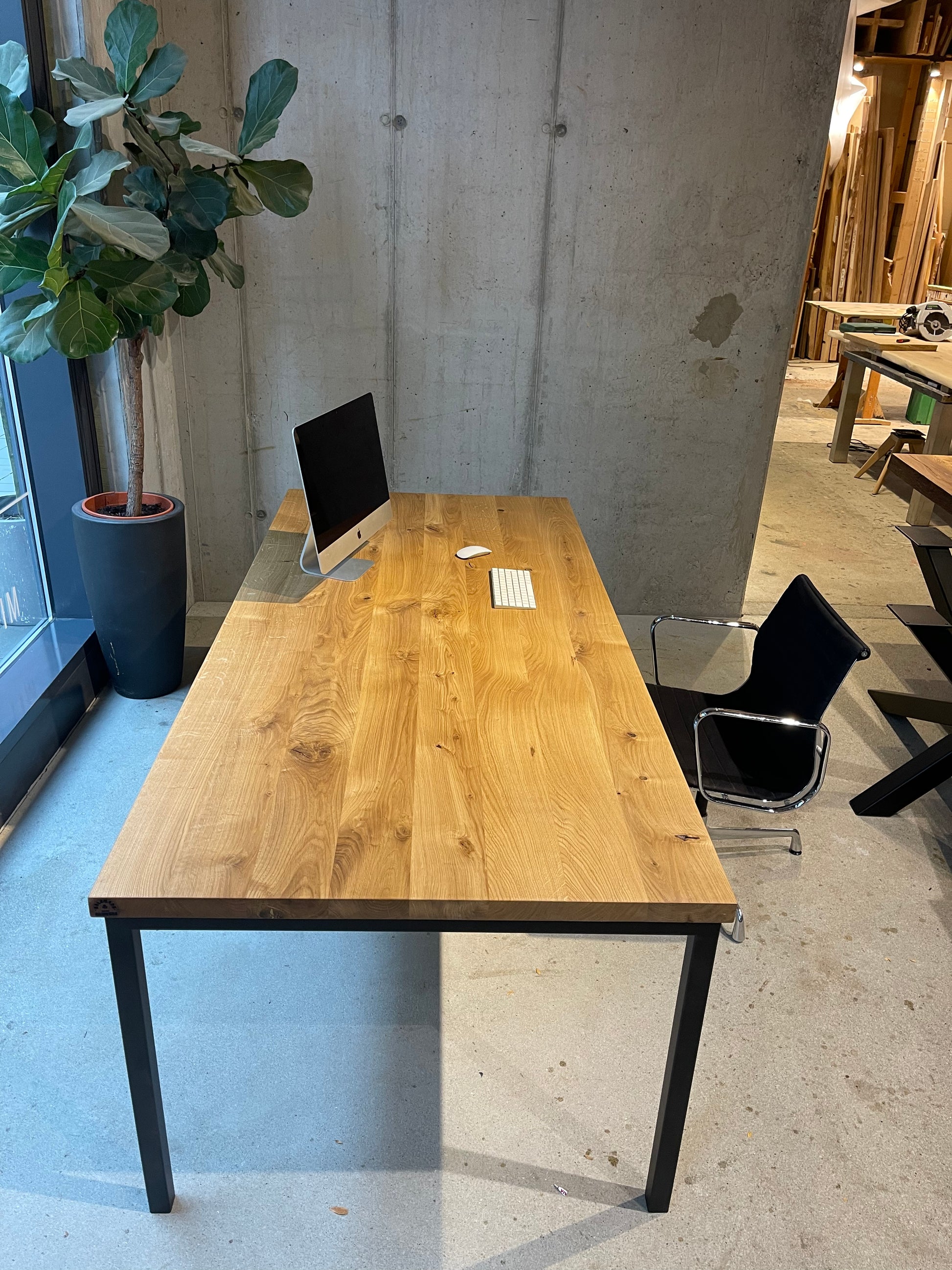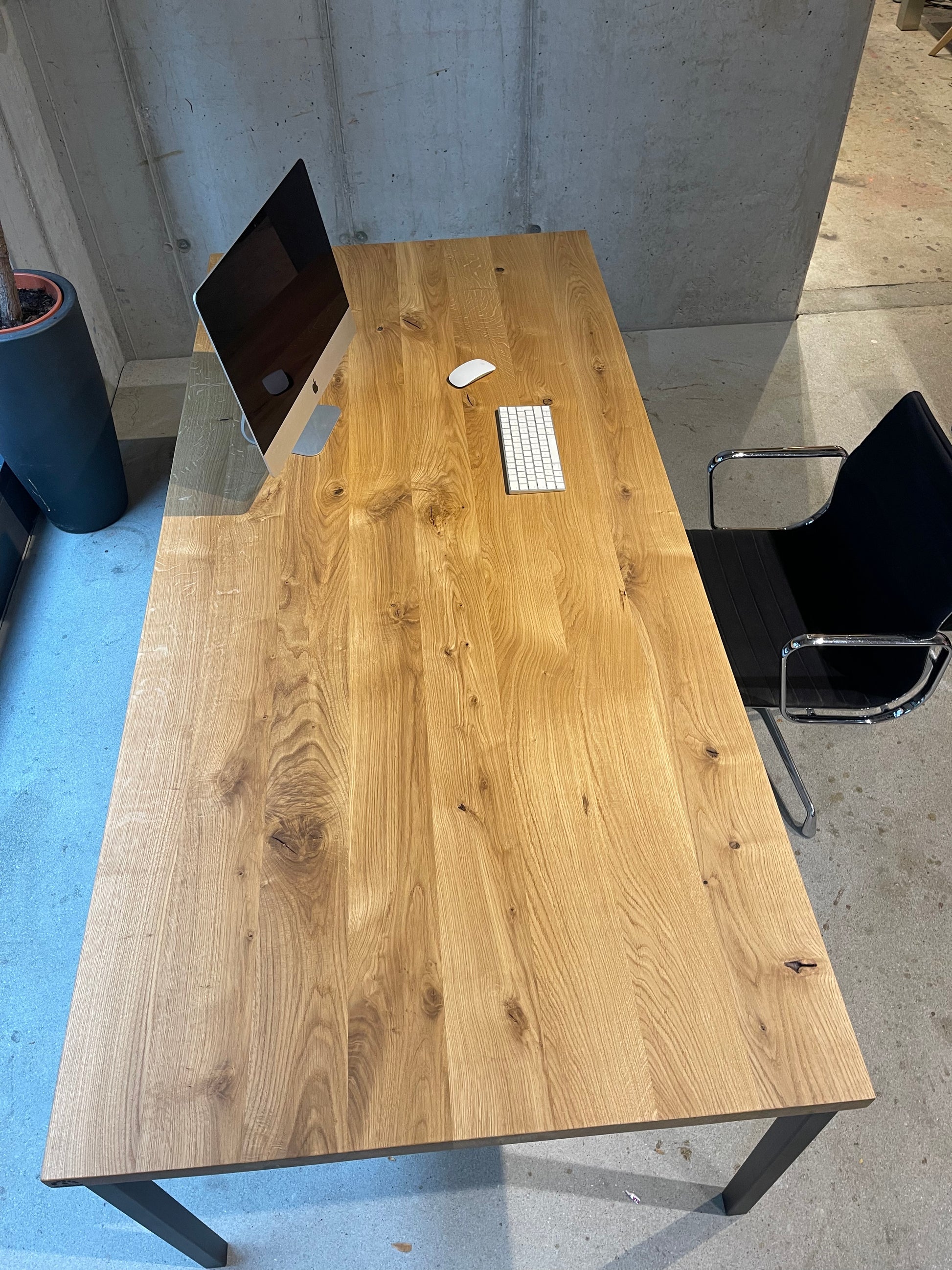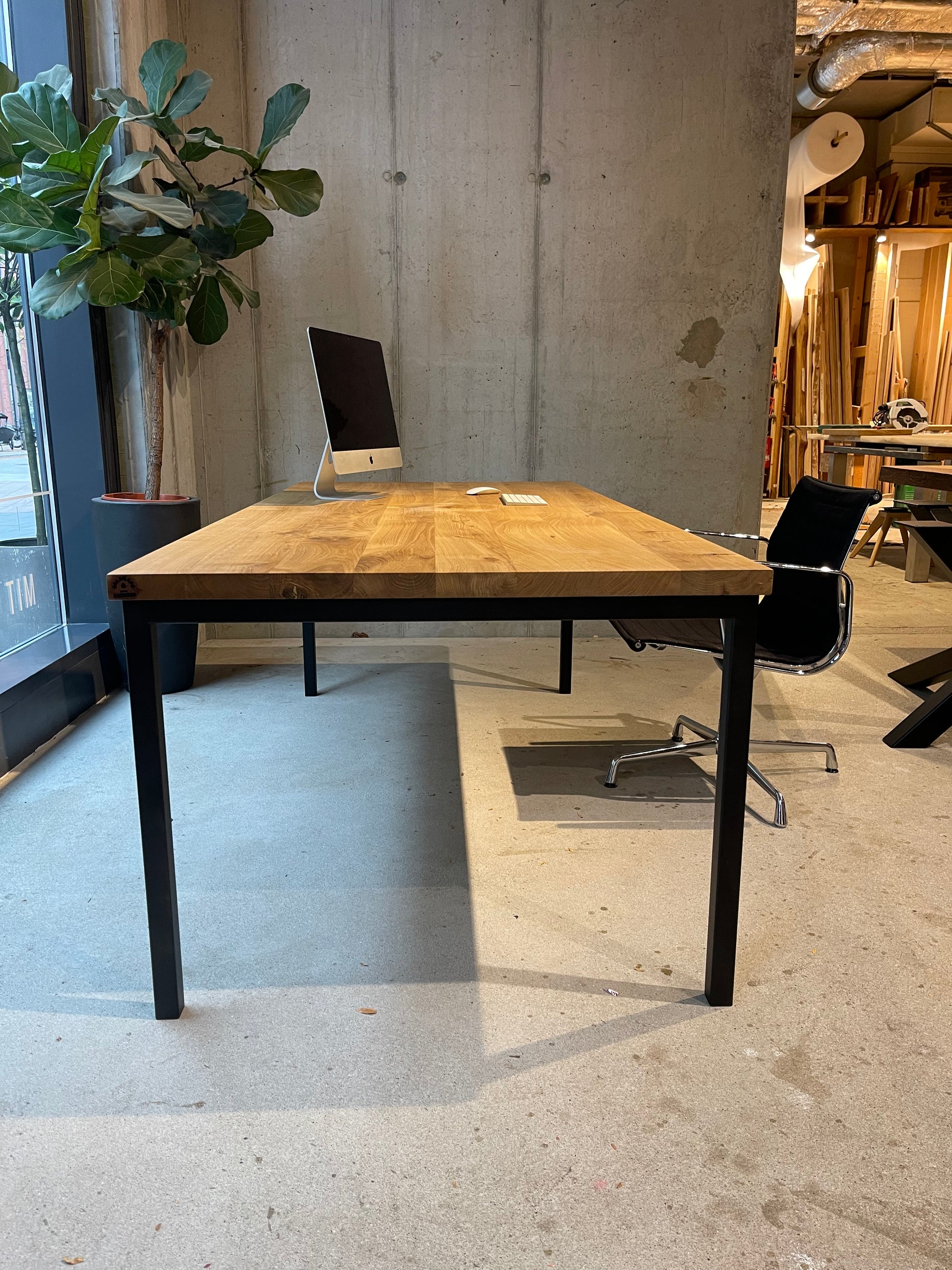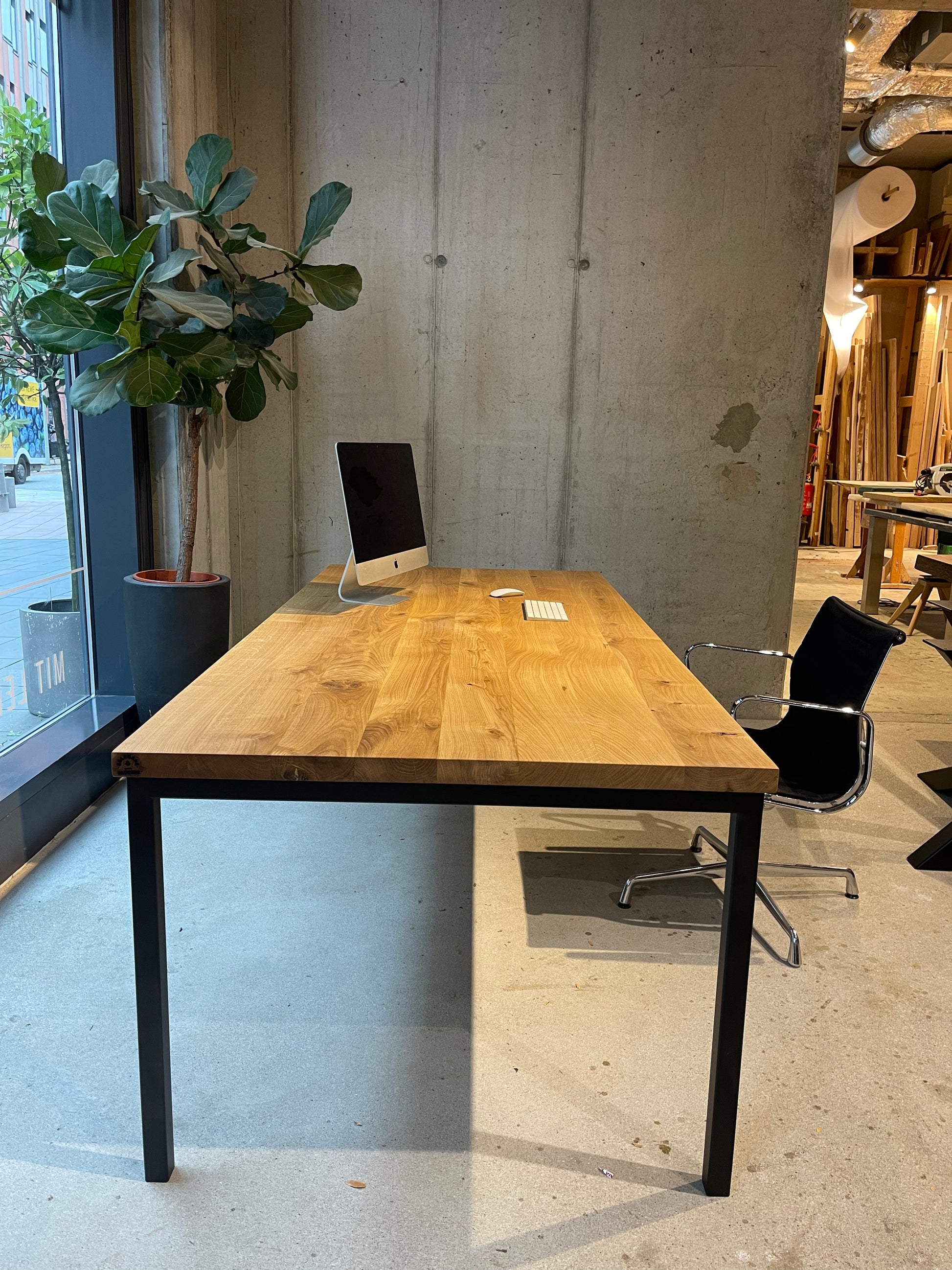 Moderner Schreibtisch aus Eichenholz – Massivholz trifft auf Metall