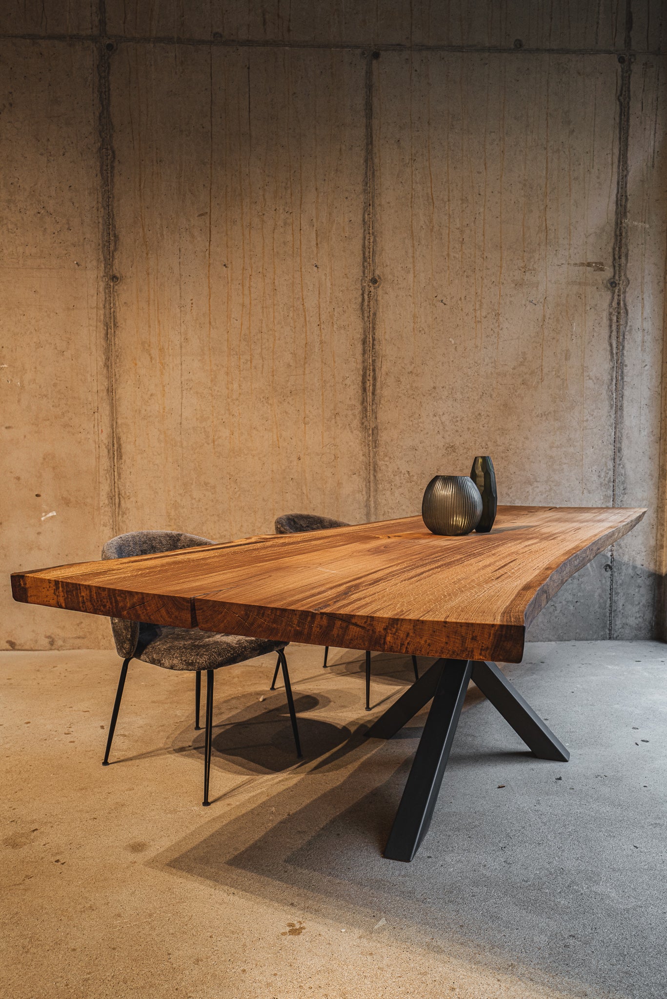 Ein einzigartiger Massivholztisch, der Natur, Handwerkskunst und exklusives Design in sich vereint.